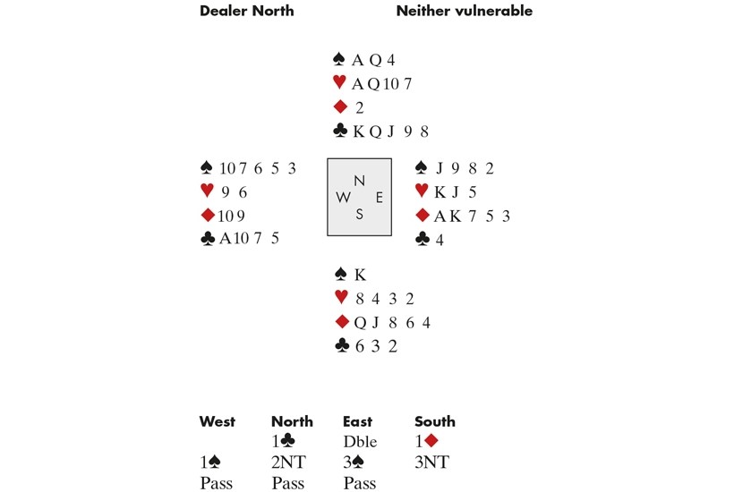 East led the ♠2, won in dummy. Steve did well to play a club to the ♣9, followed by the ♣K (East throwing a diamond). West won and returned a spade. Steve now ran the clubs, carefully watching East’s discards. East came down to ♠J9 ♥KJ, ◆AK. He should have thrown a winning diamond and kept the ♥5, but that was hard to do. Steve cashed the ♥A, and played the ♥10 to East’s ♥K. East cashed the ◆AK — but that was it for the defence.