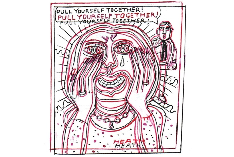 There followed visits to the optician, another doctor, the hospital eye department and, like Tony Hancock, I gave an armful of blood, but all tests were negative. Someone muttered ‘Royal Free disease’ but then ‘Multiple sclerosis’, which typically starts to affect women in their twenties and thirties. Double vision can be an early symptom, so I was sent to the neurological hospital in London’s Queen Square, where, after I had walked down a line chalked on the floor several times in front of several doctors of escalating seniority, had my knees tapped with many a rubber hammer and had lights shone into my eyes, they diagnosed ‘post-viral syndrome’. No treatment, no cure. ‘It will just go away by itself.’