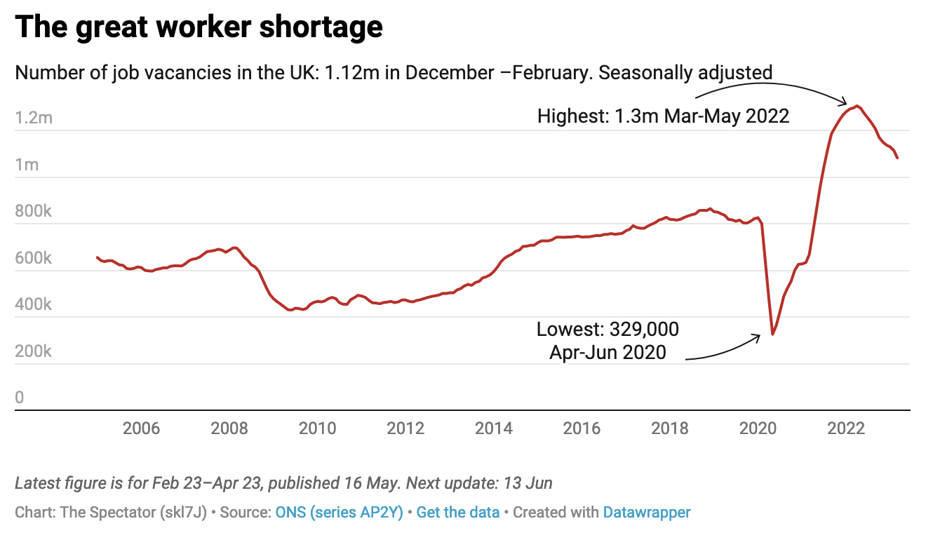 But to what extent is this really a battle between native and foreign workers? If the UK were suffering from an incredibly loose labour market – with no jobs on offer and people desperate to find work – this would be a far more relevant debate. But as things stand in the UK, there are still over one million job vacancies, not far off the record high reached during the pandemic. In other words, there are endless job options for anyone looking. And while inflation is eating into all of our pay-packets – taking its toll on real wages and making us feel worse-off – salaries are up roughly 6 per cent this year, with no evidence whatsoever that this record level of migration is holding them down.