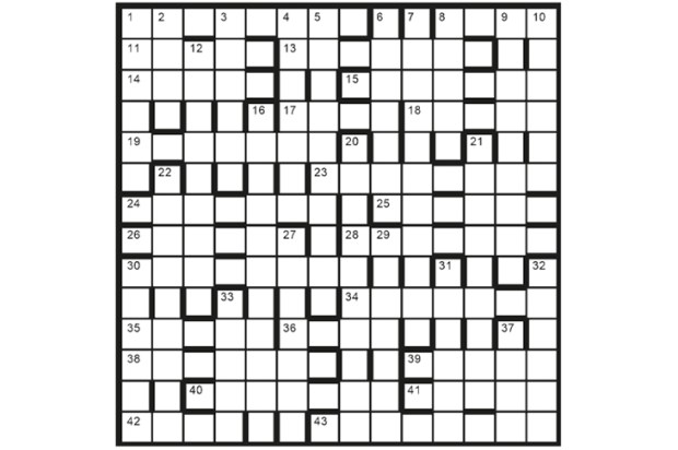 A first prize of £30 for the first correct solution opened on 5 August. There are two runners-up prizes of £20 (or, for UK solvers, the latest edition of The Chambers Dictionary — ring the word ‘Dictionary’). Entries to: Crossword 2122, The Spectator, 22 Old Queen Street, London SW1H 9HP. Please allow six weeks for prize delivery.