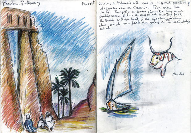 It would be wrong to call these agreeable Mediterranean jaunts — copiously illustrated from the sketchbooks — voyages of discovery, for the Powells take social baggage with them, and the meanest rock on the road to Petra usually conceals a vacationing stockbroker that ‘Tony’ messed with at Eton. ‘It was said in my grandmother’s time that if one sat outside Shepheard’s Hotel in Cairo everybody one had ever known would pass by,’ Violet writes at one point.