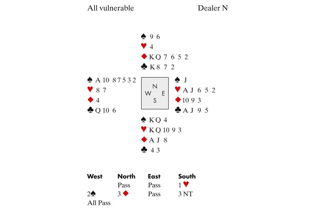 Somewhat wet bidding by the opponents allowed Bjaring to reach 3 NT. West led a spade to the jack and king which South won and ran six rounds of diamonds. As we can see, declarer has no entry back to hand, and if the defence holds on to all their clubs, they can make three tricks in that suit plus their two aces. Either West did not know that his partner had no more spades, or he was under too much pressure to read his signals, but he elected to discard two hearts and two clubs. When Christer Bjaring eventually led a heart from dummy, East won and tried a small club, but now dummy’s club pips were good enough to produce the ninth trick.