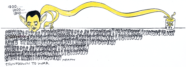 Details of the chemical attack on the eastern and south-western suburbs of Damascus remained unknown. Médecins Sans Frontières said that 3,600 patients with neurotoxic symptoms were treated at three hospitals with which it had contact, and that at least 355 of them died. UN chemical weapons inspectors were allowed by the Syrian government to visit the sites only five days after the incidents. The inspectors came under sniper fire as they tried to visit an area west of Damascus on their first day. John Kerry, the US Secretary of State, said the use of chemical weapons by the Syrian government was ‘undeniable’ and a ‘moral obscenity’. Russia said that any action taken outside the UN Security Council could have ‘catastrophic consequences’. President François Hollande said: ‘France is ready to punish those who took the vile decision to gas innocent people.’
