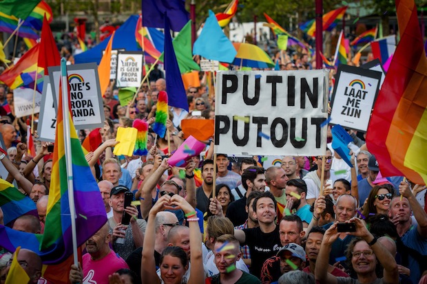 Eighty-eight per cent of Russians support the ban on gay propaganda for schoolkids. If Americans or Brits were allowed to vote on this subject, my guess is it would be around 75 per cent in favour of the ban. The gay lobby of course would eat alive (pun unintended) any politician who tried to run such a poll. When Pat Buchanan and the magazine he and I started back in 2003 published the fact that only 2 per cent of America was gay — the popular conception, aided and abetted by Hollywood, the fashion industry and the gay lobby, was 20 per cent — they threw everything but a rubber dildo at us, but Pat lives next to the CIA headquarters in Langley, hence he’s hard to hit, and I was abroad living the good life on my yacht. Even harder to find.