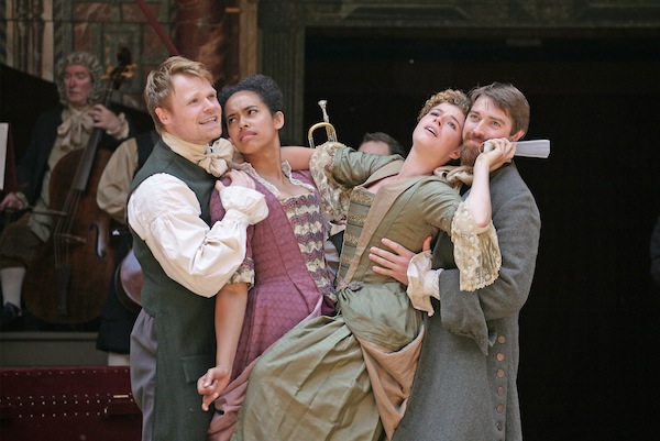 The play, by Samuel Adamson, is set in London in the 1690s and the action is accompanied by Purcell’s music. And I’m glad to report that Samuel Adamson can write as well as Shakespeare. Well, OK, let me rephrase that with different punctuation. Samuel Adamson can write — as well as Shakespeare. His play is a flung-together scrapbook of gags, sketches and semi-historical blarney written in rhyming couplets and featuring characters with ponderously silly names: Lady Victim, Sir Cockmerry, and so on. If Adamson was aiming for quaint, flashy and self-regarding artifice he succeeded brilliantly.