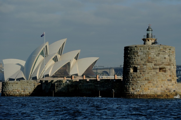 We start with drinks on the lawn of the fort’s upper level. The harbour puts on a show for us as only it can. To my huge relief, the weather is perfect — a balmy evening and the wind drops right on cue. To the west, the sun goes down between the bridge and the Opera House, and a wisp of cloud appears on the horizon just in time to create a dreamy sunset. To the east, the full moon rises through the heads. The harbour’s resident tall ship glides by silently like a giant swan; a puff of breeze fills its mainsail. I hum to myself the old Ray Davies song about another water city: I am in paradise.