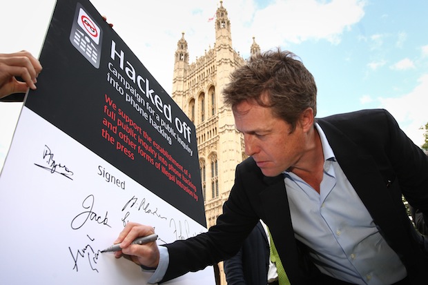 It is a peculiar alliance, when you think of it, which wishes to bring to an end 300 years of press freedom in this country. The handsome actor Hugh Grant would rather the press didn’t find out about him being ‘noshed’, as I believe the term has it, by a prostitute on some Los Angeles freeway. I can understand that, even if I do not think he has the right to make that call, given the image he adopts to sell himself to the public. The absolutist metro liberal left, meanwhile, would have no doubt -whatsoever who was the victim in that particular scenario: the nosher, not the noshee. Grant should be prosecuted and outed; the, uh, sex–worker, meanwhile, is a victim, oppressed by very real economic and gender (and in the case of Hugh’s illicit young lady) racial imbalances intrinsic to the capitalist system.