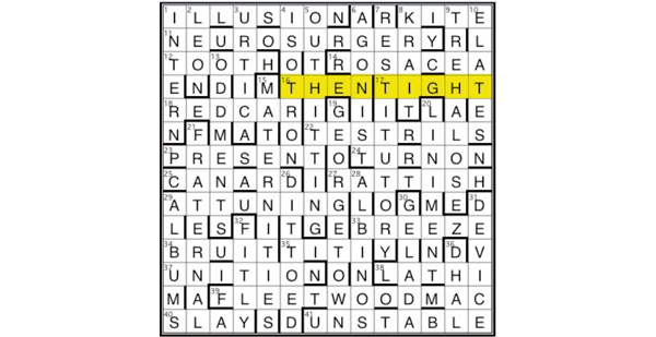 Initial letters of superfluous words in clues give titles of ALBUMS (29D) by FLEETWOOD MAC (39). 8A, 25, 33 and 34 are RUMOURS; 12 defines TUSK, and 1A defines MIRAGE; and TANGO IN THE NIGHT indicates 16 /17.