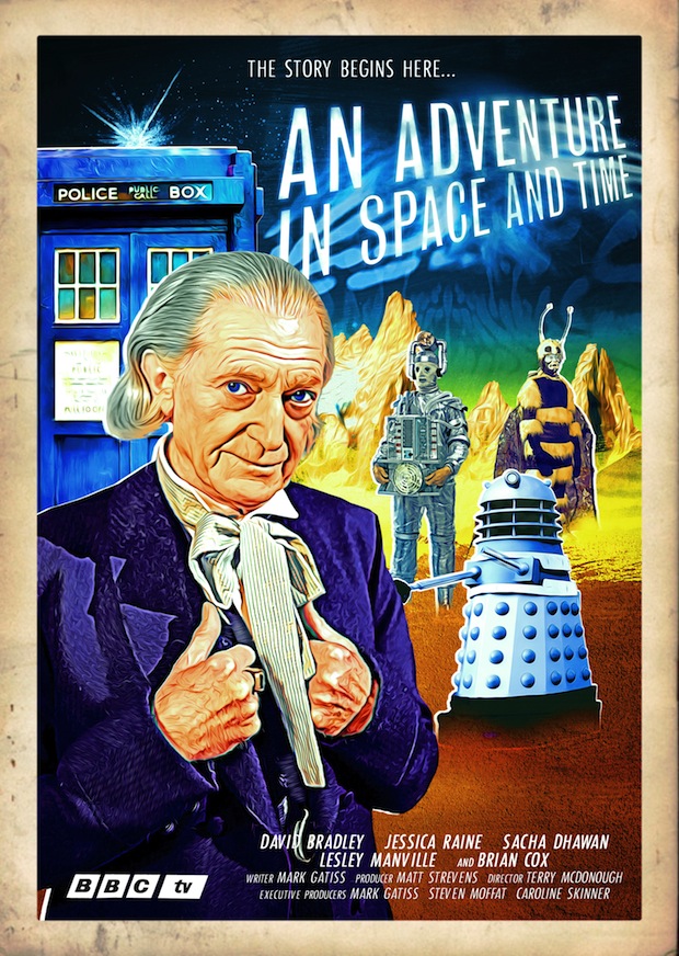 Adventure is a movie about the origins of the series, and the BBC executives and actors involved in its creation in 1963. It has the time machine itself as part of its to-and-fro plotting (a cheap trick, using time travel as a conceit for anything Doctor Who-related, I think, don’t you?). What the BBC conveyed through this well-produced film, which also starred Jessica Raine and David Bradley, was ‘Doctor Who as the Little TV Show That Could’. The odds were against it — low budget, a terrible set, lack of faith from BBC top brass.