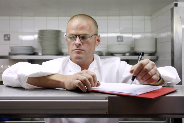 Blumenthal is a historian chef, a successor to the celebrity chef; he is an intellectual. I say this not because he wears spectacles but because his website has a dictionary definition of dinner — ‘A formal evening meal, typically one in honour of a person or event — from old French Disner’. Blumenthal doesn’t cook food — he regards it, divines it, and rips it apart — and his devotees have fanned out, and spend their days designing salad in the shape of the elves of Rivendell, and vegetables in the shape of hurt. On eating a seafood dish at the Fat Duck, for instance, diners are invited to listen to the sea via iPod, an experience so synthetic I suspect it isn’t worth the trouble, and I’d get a train to Penzance and suck on a raw mackerel instead. (I hate an homage.) I wouldn’t mind Blumenthal’s molecular gastronomy so much if it didn’t remind me of both the idiocies of Paris couture and Alain de Botton. But it means that any meal at a Blumenthal joint carries almost unbearable expectations, for the diner and the food. Poor food.