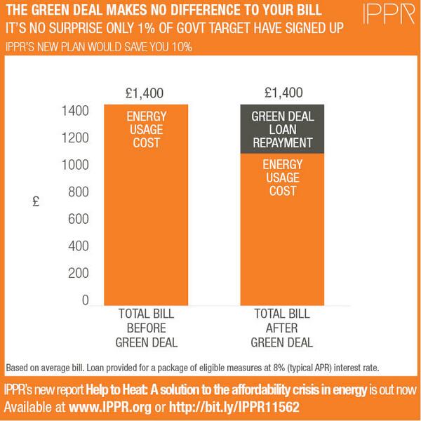 The green schemes always look better on paper. The proposed ‘Green Deal’ was supposed to have led to the installation of insulation in 10,000 homes by the end of the year. It emerged this week that barely a tenth of this figure, 1,170 households, have been helped. Little wonder – the IPPR think tank (below) has shown that Green Deal repayments on the extra insulation will add back whatever is saved in energy payments. People are no better off, which is why so few have signed up.