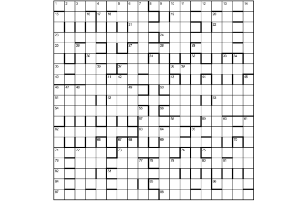 Five Christmas carols (5, 6, 5, 3 and 4 words respectively) have been re-arranged, and re-titled at 23/38 (4 words), 59/54/62D/5 (4 words), 87/12/74 (4 words), 20 (5 words) and 72/46A (3 words). A sixth carol (19 letters, 4 words) has been concealed in the grid under a new title (4 words), which must be highlighted. The initials of all six original carols can spell CUT BACK SWIM — COMFORT ICY DIGITS. Ignore an accent in 36D.