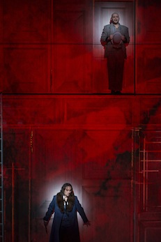 The women are powerful. Véronique Gens is a vocally overwhelming Elvira, but is given no chance to develop this complex and desperately sad role. Anna, too, becomes one-dimensional, and that dimension is not vengeance, but Malin Byström makes her Act II aria more vivid than it usually is. Elizabeth Watts is a shrewish, on-the-make Zerlina, her two lovely arias unmoving. The final scene is cut so that there are no individual contributions — the characters don’t exist now that Giovanni has gone — and only the few moments of ensemble, with the lights up. One last thing: this is the least sexy Don Giovanni I can remember.