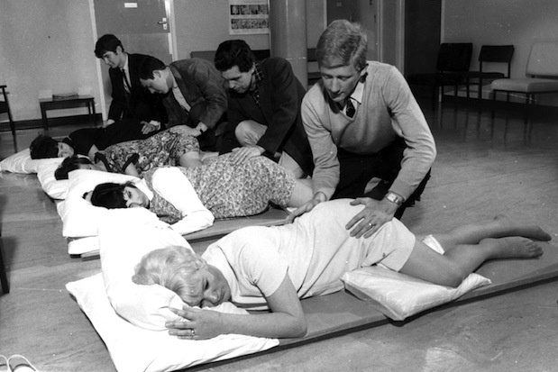 My wonderful tennis coach Paul and his wife are having their first baby next month. But they are not on speaking terms (or they weren’t last Wednesday). Why? Because Paul has refused point blank to go to any more National Childbirth Trust pre-natal classes. Here’s why. The first thing he was asked to do was write his name on a piece of paper, alongside his favourite food — but it had to be a food which begins with the same letter as his name. Paul wrote down ‘potato’, adding ‘roasted, with gravy’. The pieces of paper were then handed round among the eight couples present, so that they could all get to know each other. This process took 35 minutes. (The classes last for two hours, from 7.30 p.m. to 9.30 p.m.) Next he was given a little plastic baby and a little plastic pelvis to play with, so that he could discover the best way to manoeuvre the baby through the pelvis (during this activity, which went on for 40 minutes, the men were taken into a separate room). Then he was required to massage his wife’s back for five minutes — with the lights turned off. Another task was to gaze for a long time at various pieces of A3 paper with illustrations showing small shifts in the baby’s position as it emerges from the womb. Finally the men had to write down four romantic things to give their wives during labour. Paul wrote ‘headgear, in case she hits me’. He endured two of these classes — heroic.