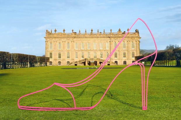 Craig-Martin’s intervention (until 29 June) is three-pronged. Indoors he has laid an intriguing trail of magenta plinths, which show gems from the Devonshire family’s sculpture collection, including Canova’s ‘Sleeping Endymion’, in a new light. He has also curated a display of 12 Old Master drawings.