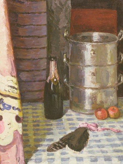 Both he and Clive Bell were good shots, and there was always plentiful game at Charleston and Hilton in season. Occasionally this led to episodes which the Marx Brothers could have exploited had they made an Oscar-winning film, The Body Snatchers.Vanessa and Duncan would appropriate the birds and hang them on a nail, keen to paint natures mortes. Clive, while sympathetic to the painters, was anxious lest the game got too high in the heat of the studio. On one occasion, Grace, the cook, knocked on the studio door, distraught: ‘Mrs Bell! Mr Grant! I need these birds here and now. Mr Bell wants them for dinner before the maggots get them and I must get them plucked and all.’ She cooked them very well, with fried breadcrumbs, watercress from the dewpond in the adjacent field and crisp potatoes. Clive uncorked the claret. There is a remarkable painting by Vanessa, reproduced in this book, of a brace of pheasants, definitely dead, but appearing to try to have a post-mortem beakful of wine while hanging by their tail feathers.