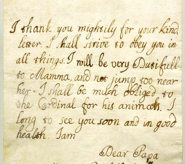 Private documents from more distant monarchs are housed in the archive, although these tend to be rarer. A charming letter from a seven-year-old Bonnie Prince Charlie (above) reassures his father that he is behaving himself during exile in Rome.