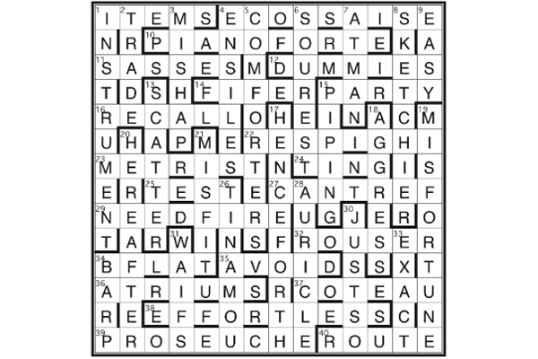 Superfluous letters in definitions form the phrase HOLD THE FORT. Thematically created entries at 5, 10, 17, 19 and 38 are defined by 12, 1D, 20, 3 and 9.