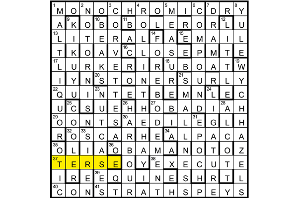 The LITERAL QUINTET (13/22) was TERSE (37). 7A suggests ‘reest’, 40 steer, 5 stere, 6 ester, 19 trees and 26 reset. TERSE was to be shaded. The title suggests ‘teres’.