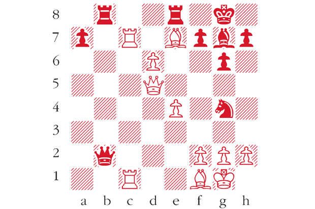 White to play. This is from Perez Ponsa–Frick, Tromso Olympiad 2014. How did White blast through? Answers to me at The Spectator by Tuesday 12 August or via email to victoria@-spectator.co.uk or by fax on 020 7681 3773. The winner will be the first correct answer out of a hat, and each week I am offering a prize of £20. Please include a postal address and allow six weeks for prize delivery.