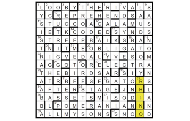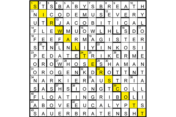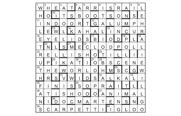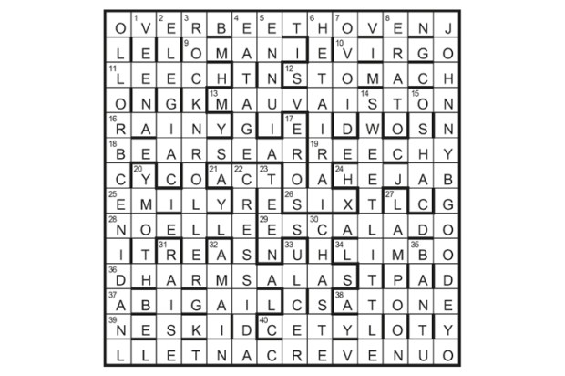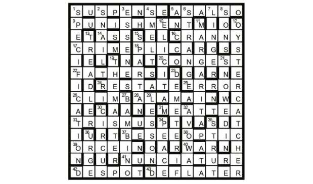 The four works were Waverley (anagram of 12/21), Kenilworth (15/8), The Talisman (29/2) and Ivanhoe (38/37) by SIR WALTER SCOTT (diagonally NW to SE) which was to be shaded. Title: anagram of Redgauntlet.
