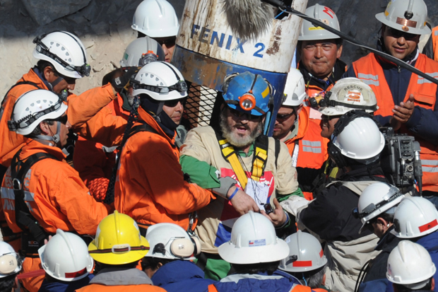 Eventually, on 22 August, a crashing noise in the tunnel outside the Refuge signalled the arrival of the drill to which they attached the famous note telling the world that they were all ‘well’. Yet, even here, as the celebrations broke out all over Chile, and as a video link and all manner of supplies began to be lowered to the men, there was more bad news. The rescue, they were told in a personal phone call from the president, could take four months — and they could hear parts of the mine still collapsing.