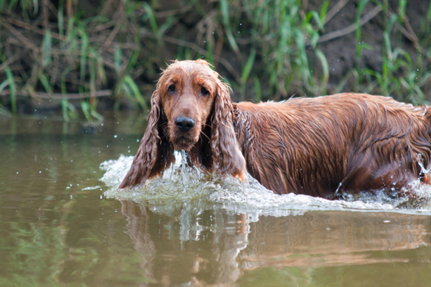 The first dog, Cydney’s mother, a truly great gun dog who can usually perform any kind of retrieve, wiggled around in the water, stuck her head under, sneezed, shook her head, jumped back out. The second dog, one of Cydney’s cousins, threw himself in and splashed around manfully to no avail. The third dog, another cousin, managed to locate the bird under the water, but couldn’t pull it free. The dog trainer stood on the side of the bank urging them all to get back in and try again but none of the spaniels was having it. A desperate squeaking sound pervaded the air as they all expressed their frustration with the enterprise.