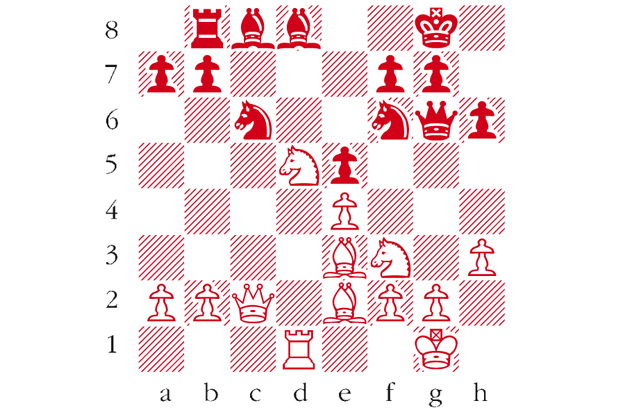 White to play. This is from Hebden-Mannion, Isle of Man 2014. White’s next move completely destroyed the black position. What was it? Answers to me at The Spectator by Tuesday 4 November or via email to victoria@spectator.co.uk or by fax on 020 7681 3773. The winner will be the first correct answer out of a hat, and each week I am offering a prize of £20. Please include a postal address and allow six weeks for prize delivery.