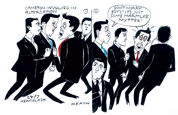 The last British combat troops turned over Camp Bastion in Helmand to Afghan forces and withdrew from Afghanistan after 13 years and 453 deaths. Michael Fallon, the Defence Secretary, spoke of ‘whole towns and communities being swamped by huge numbers of migrants’. He later withdrew the word ‘swamped’, but David Blunkett, a former Labour home secretary who used the word 12 years ago, said: ‘I believe that both Michael Fallon and I were right to speak out.’ This came after Angela Merkel, the Chancellor of Germany, responded to an idea of David Cameron, the Prime Minister, that European Union migration could be renegotiated; she said: ‘Germany will not tamper with the fundamental principles of free movement in the EU.’ The Home Office has a backlog of 29,000 asylum applications dating back at least seven years, the Public Accounts Committee said, and contact had been lost with 50,000 people who had been refused the right to stay. In response to a demand from the European Commission for an extra £1.7 billion contribution from Britain, because its economy has done better than other countries’, Mr Cameron had expostulated: ‘I’m not paying that bill on 1 December. It is not going to happen.’ But Jacek Dominik, the European Commissioner for Budgets, said that any negotiation would ‘open up a Pandora’s box’. Dean Farley, aged 28, a jogger wearing a Tintagel T-shirt, bumped into Mr Cameron in Leeds, and was arrested by police, only to be ‘de-arrested’ a few minutes later.