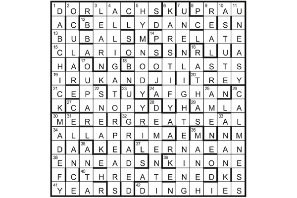 Unclued lights each contained a different TREY (20) from the alphabet: AFGHAN (24), CANOPY (27), DINGHIES (42), DABCHICK (1D), HYMNODY (5), KARSTIFY (6), ASTUTE (10), CALMNESS (26) and MADEFY (30D). The title suggested KLM.