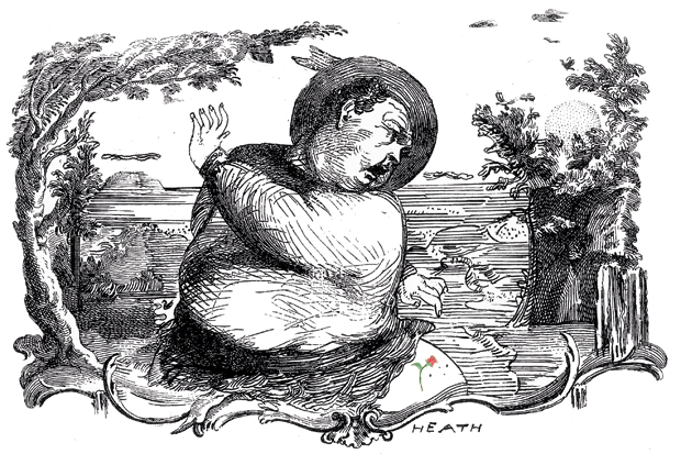 I waited in the perfect spring air. Then, quite suddenly, I felt the call that all the men of the world feel once a day (that is to say, the solid urge). It was no matter as there were plenty of bushes and hedges in my rival’s gorgeous garden. So I slipped behind one, undid my breeches and crouched down. Then I glance below and saw that I was kneeling above a puddle of clear water. I could see beautiful blue sky reflected! I could see the mirrored heavens in their glory! I could see, with perfect revelation, my own bottom! And there was no birthmark.