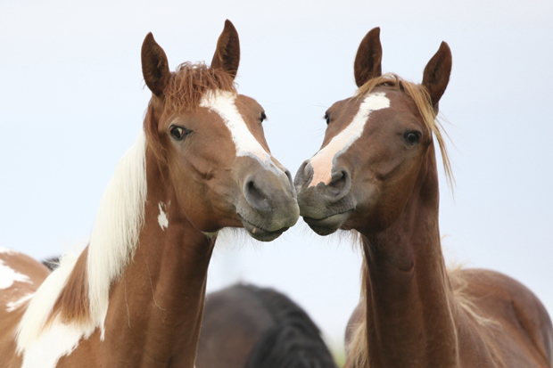 I should explain that the two are very closely bonded. Despite being much smaller in stature, Gracie is a mother figure to Darcy because they were turned out in a field together when Darcy was growing up. Grace, the worldly-wise ten-year-old, took the thoroughbred yearling under her wing and taught her everything she knew: chiefly, how to avoid being caught on sunny days when the grass was nice and sweet by running round and round in circles, and how to queue up at the gate to be brought in when it was raining — ‘That’s it, look miserable. See, here she comes!’