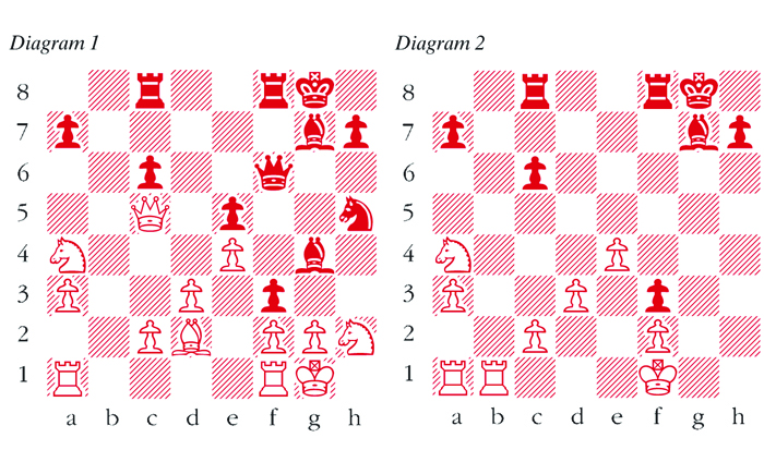 1 e4 c5 2 Nf3 Nc6 3 Bb5 g6 4 Bxc6 dxc6 5 d3 Bg7 6 h3 Nf6 7 Nc3 b6 8 Be3 e5 9 0-0 Hypnosis or too much trust in the opposition. After the obvious pawn grab 9 Nxe5 Nxe4 10 Qf3, Black’s position is precarious and probably already lost. Inexplicably the world no. 2 ignores this golden opportunity. 9 … 0-0 10 a3 Qe7 11 Qb1 Nh5 12 b4 White has conceived of an artificial plan to attack Black’s weakened queenside pawns. However, Black is able to counter-punch on the opposite wing against White’s King. 12 … f5 13 bxc5 f4 14 Bd2 bxc5 15 Qb3+ Be6 16 Qa4 Rac8 17 Qa5 g5 18 Na4 g4 19 hxg4 Bxg4 20 Qxc5 Qf6 21 Nh2 f3 (see diagram 1) Sacrificing a piece to break up White’s kingside. There is no way that White can retain his extra material. 22 Nxg4 Qg6 23 Qe7 fxg2 24 Rfb1 Qxg4 25 Qg5 Qe2 26 Qe3 Qg4 27 Qg5 Qxg5 28 Bxg5 Nf4 29 Bxf4 Better is 29 Kh2 Kh8 30 Re1 h6 31 Bh4 Bf6 32 Bg3 Rg8 33 Rg1 Rg5 34 Rxg2 Rcg8 35 Kh1 Nxg2 36 Kxg2 with a likely draw, since it is difficult for Black to penetrate the White camp. 29 … exf4 30 Kxg2 f3+ 31 Kf1 (see diagram 2) 31 … Rf4 Instead of grabbing the rook, Carlsen cleverly introduces the threats of… Rh4 and … Rh1. 32 c3 Rd8 33 d4 Bh6 34 Ke1 Rxe4+ 35 Kd1 c5 The final blow since after 36 Nxc5 Re2, White no longer has the defence Rb2. 36 Kc2 cxd4 37 Kd3 Re2 38 c4 Rxf2 39 Rd1 Re2 White resigns
