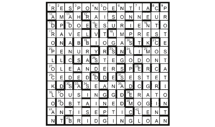 The words FAST FORWARD (given by letters added to definitions in clues) define 42 and 11, both indicating the way in which loans (1, 13, 18, 25, 32 and 43) are supplied.