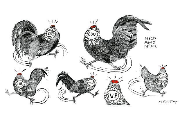 Opinion polls showed the two largest parties still close, as they had been all year, the Lib Dems not much changed and Ukip down a touch. In Scotland, the Scottish National Party gained more than 50 per cent support in opinion polls, which could leave Labour and the Liberal Democrats with one seat each there out of 59, and the Conservatives with none. ‘I really feel so passionately about this election,’ shouted David Cameron, the Conservative leader, in a speech made with his coat off and his sleeves rolled up, declaring that seeing entrepreneurs start new businesses ‘really pumps me up’. In this condition he announced that he would pass a law forbidding himself from raising income tax, national insurance or VAT. Ed Miliband, the Labour leader, put on a Cockney accent to be interviewed by the comedian Russell Brand on his YouTube channel. An Egyptian court sentenced Mike Coupe, the chief executive of Sainsbury’s, in absentia to two years’ imprisonment on strange charges of seizing cheques.