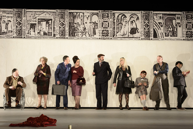 There is a sense, perhaps, that Holten’s psychoanalytic focus — with the drama unfolding ‘inside’ Roger’s head — is a little too exclusive. Certainly, the final act is weakest, rather lacking a sense of how the fruits of Roger’s mental struggle might bear on the fate of his scattered subjects. But the opera’s dramatic force remains palpable throughout thanks to the clarity of Holten’s underlying conception and his unfussy direction of the singers who are, by and large, left in relative peace to find their space and sing from it. This is particularly good because the sense of dynamism comes from the pit (too much stage busyness would simply dilute it) and also because the soloists need all their strength to project above the volatile orchestral texture. The Polish baritone Mariusz Kwiecien, suitably experienced in the role, gives a tremendously focused performance, his thick baritone wet with unsettled might and anguish. Georgia Jarman’s Roxana projects a suitably dreamy, absent-minded voluptuousness, while Saimir Pirgu’s Shepherd, his white clothes and teeth gleaming out from his golden frock-coat, is beautifully pitched, his even tenor seeming effortlessly to draw all other sounds into itself. The chorus, directed by Renato Balsadonna, rises magnificently to the occasion.