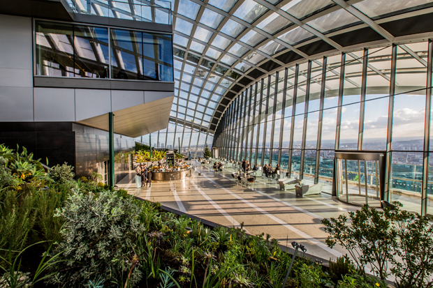 The entrance is a security checkpoint next to a lift. The initial interaction with Fenchurch is, therefore, reminiscent of the security aisle at Gatwick South Terminal, but without the possibility of escape to somewhere better, or a W.H. Smith. One day, in some tyranny of the future, we will all dine like this, if we dine at all — behind checkpoints, 525 foot blah above the earth, where the windows do not open but the sky, as an insult, is huge and untouchable. I ask the guards why the security checkpoint/entrance is necessary. They say they are worried about ‘guns’. Isn’t everyone?