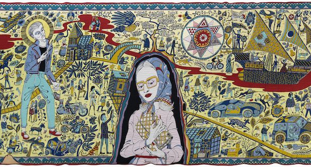 Recently Perry has unveiled ‘A House for Essex’ — his most nuttily ambitious project to date. This structure, a Hansel-and-Gretel cottage in a quasi-Slavic style sited at Wrabness at the mouth of the Stour, resembles a vision from what the comedian Lenny Bruce used to call ‘outer taste’. Inside, there are works recounting the life of a figure from Perry’s imagination: Julie, a mythical Essex social worker and former rock chick born on Canvey Island, who was eventually slain by a takeaway curry deliveryman’s motorbike in Colchester High Street.