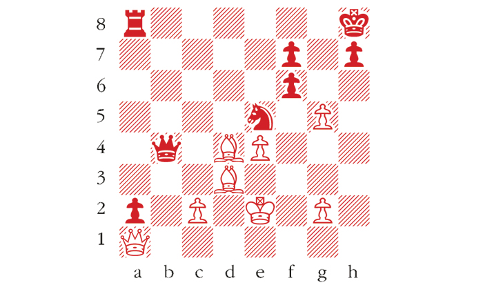 Black to play. This is from Short-Polgar, Madrid 1995. Judit Polgar is the strongest female -player ever, with an overwhelming plus score against Nigel Short. This is the conclusion of one of her many wins against him. What is the key move? Answers to me at The Spectator by Tuesday 5 May or via email to victoria@spectator.co.uk or by fax on 020 7681 3773. The winner will be the first correct answer out of a hat, and each week I am offering a prize of £20. Please include a postal address and allow six weeks for prize delivery.