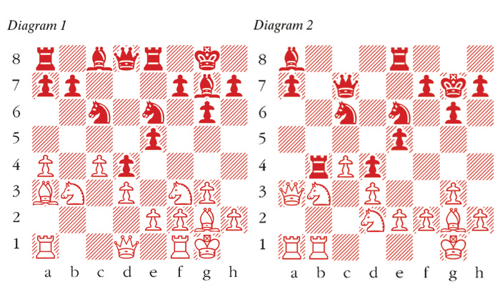 1 Nf3 d5 2 b3 Nf6 3 Bb2 g6 4 g3 The double fianchetto is the hallmark of this variation. 4 … Bg7 5 Bg2 0-0 6 0-0 c5 7 c4 d4 8 b4 This is necessary before Black builds up a powerful centre with moves such as … Nc6 and … e5 when White’s dark-squared bishop runs the danger of being permanently locked out of play. 8 … Nfd7 9 bxc5 The game Keene-Mallee, Mannheim 1975 saw instead 9 a3 e5 10 d3 Nc6 11 Nbd2 where White was also successful. 9 … Nxc5 10 d3 Nc6 11 Nbd2 Re8 The Kramnik-Svidler game diverged here with 11 … Rb8 12 Ba3 Qa5. 12 a4 e5 13 Nb3 Ne6 14 Ba3 (see diagram 1). The point of White’s play has been to activate the dark-squared bishop and create potential pressure against Black’s queenside pawns which can be attacked both via the open b-file and from White’s long-ranging bishop on g2. 14 … Rb8 15 Nfd2 Bf8 16 Bxf8 Kxf8 17 a5 Nb4 18 Qc1 Kg7 19 Qb2 Nc6 Black goes into passive mode. His knight on b4 is well-placed and there was no necessity to withdraw it. Reinforcing the knight with 19 … Qe7 would be better. 20 a6 After this essential thrust Black’s queenside is in permanent danger of collapse. 20 … Qc7 21 axb7 Bxb7 22 Qa3 Ba8 23 Rfb1 Rb4 (see diagram 2). Setting a rather transparent trap. Of course now 24 Bxc6 Qxc6 25 Qxb4 fails to either 25 … Qg2 or 25 … Qh1 checkmate. 24 Bd5 Qe7 25 Na5 Rxb1+ 26 Nxb1 Qxa3 27 Rxa3 Nxa5 Submitting meekly to his fate. He should once again exploit his control of b4 by playing 27 … Nb4. 28 Rxa5 Bxd5 29 cxd5 Nf8 30 Rxa7 Rd8 31 Ra5 Nd7 32 Nd2 Nb6 33 Nc4 Nxd5 34 Nxe5 Nc3 35 Ra7 Kf6 36 f4 Rb8 A terrible blunder but he is losing anyway after 36 … Nxe2+ 37 Kf2 Nc1 38 Rxf7+. 37 Nd7+ Black resigns