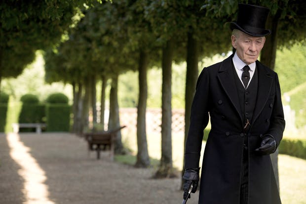 Loosely based on Mitch Cullin’s novel A Slight Trick of the Mind, and directed by Bill Condon (Dreamgirls, Gods and Monsters, The Fifth Estate), this film finds Holmes late in life, aged 93, retired and living on the south coast, where he tends to his beloved apiaries and bees. (This ultimately leads to a bee denouement that is mightily unkind to wasps, who can’t help being wasps, and not bees, and from now on, just so you’re aware, I’m #teamwasp.) Try as he might, Holmes is failing, his memory is abandoning him, and when meeting people he has to jot their names on his shirt cuff to serve as an aide-memoire. His doctor (Roger Allam) gives him a diary, which helpfully tells us the year (1947), and says every time you forget something, make a mark on the day. ‘What if I forget to make a mark?’ asks Holmes, sensibly. But Holmes never forgets in this instance, because the plot demands it, and this is just one of the scenarios that stick out like a sore thumb: there not because it would happen, but because the plot needs it to happen. If the storytelling were to whoosh you up, you wouldn’t notice, but the storytelling is so heavy-handed — so un-whooshy — you absolutely do.