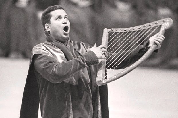 There have naturally been dissenting voices, perhaps most notably Roland Barthes, but also some German critics, and an occasional admission by admirers that he had a tendency to over-interpret in his later years. But there is a general agreement that he was incomparable for the first three decades of his career. I find, on the contrary, that he exaggerated at least as much when his voice was in its best shape, more in fact, since he could afford to take risks with it. Listen to him in Bayreuth in 1954 singing Wolfram’s apostrophe to the Evening Star (pictured above singing it in 1961), and a piece that is no more than a charming Victorian ballad is turned into something that might have been composed by Wolf, with ludicrous attention directed to every last syllable. He even, in his enormous number of Wolf recordings, manages to over-stress each word, turning brief songs into ‘meaningful’ slogs. Though he always stressed the centrality of legato, he was in fact notable for his explosiveness, his incessant disruption of line in the interests of ‘expression’, and his over-wide dynamic range, from hectoring shouts to crooning. He certainly was highly influential, but singers are only now starting to recover from his weirdly influential spell.