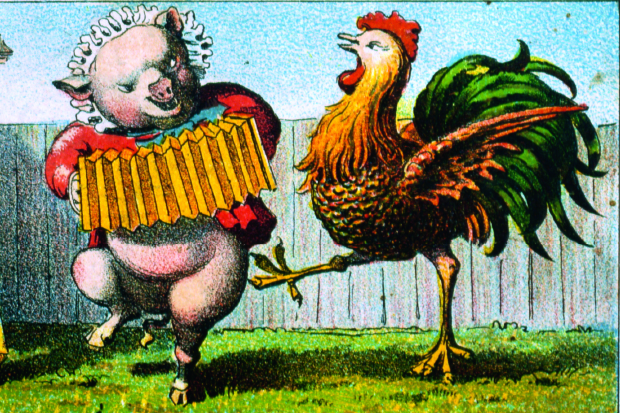 Here are two parallel books, both by Americans, both 260 pages (excluding indexes) long, both using ‘likely’ as an adverb. One looks at the history of the world through the story of the chicken; the other does the same through the story of the pig. Which would you prefer? I found the chicken one harder going — like ploughing through one of those brilliant but exhausting New Yorker articles that never seem to end, for which the journalist with too generous a budget has spent years interviewing hyper-specialist scientists in labs and ‘facilities’ across the USA — but I found the pig one sadder. There’s an illustration I had to cover up while reading page 174: of a pig being hauled onto a huge wheel, looking terrified, about to have its throat slit as part of an early pork-production line in 19th-century Chicago.
