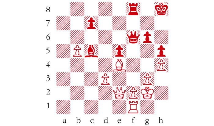 White to play. This is from Anand–Hammer, Stavanger 2015. White is a pawn up with a good position and his next move put the game beyond all doubt. How did he continue? Answers to me at The Spectator by Tuesday 7 July or via email to victoria@spectator.co.uk or by fax on 020 7681 3773. The winner will be the first correct answer out of a hat, and each week there is a prize of £20. Please include a postal address and allow six weeks for prize delivery.
