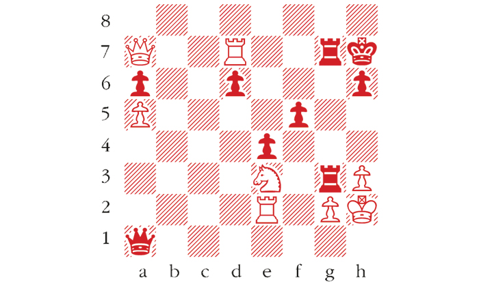 Black to play. This is from Williams-Hawkins, -British Championship 2014. How can Black finish off his attack with a fine flourish? Answers to me at The Spectator by Tuesday 28 July or via email to victoria@spectator.co.uk or by fax on 020 7681 3773. The winner will be the first correct answer out of a hat, and each week there is a prize of £20. Please include a postal address and allow six weeks for prize delivery.