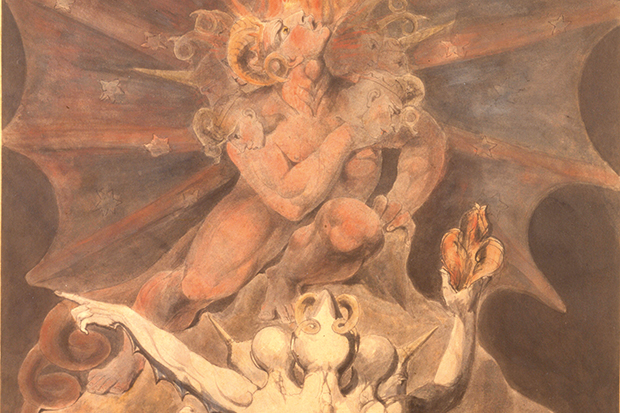 They assess how Revelation has been deployed throughout history as a political device, but do so in a cheerfully non-judgemental way. They are kind. They are measured. And this is what makes Picturing the Apocalypse such an engrossing, delightful and ultimately uplifting read. The brief musical sections are especially engaging, as is the authors’ gentle theorising about that so-called ‘paradox of Christianity’ — the Lamb. This curious and tender symbol of suffering and redemption at the core of the Christian message has been oddly underplayed throughout cultural history (when compared to, say, the Four Horsemen of the Apocalypse and the Whore of Babylon). The O’Hears use an exquisite plate by Blake — ‘The Number of the Beast is 666’ , reproduced on the previous page — to drive this point home, and as the reader looks at it, seeing the lamb hidden, almost invisible — quite overlooked — between a series of hulking, bestial torsos, it’s impossible not to ponder the deeds of Isis and their wholesale destruction of cultural artefacts.