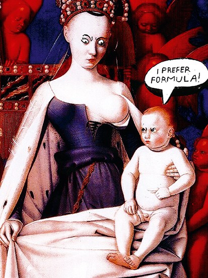 Breast milk is wonderful stuff, and all mothers owe it to their baby at least to have a go at breast-feeding. But a study I’ve read suggests that giving a baby formula can actually make its immunities stronger: the gut learns early on to tolerate different things. And bottle-fed babies do not grow up fat, ill or stupid.