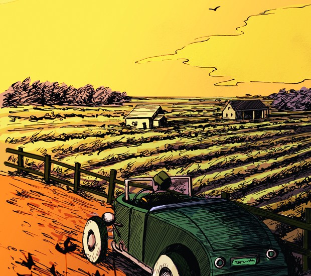 And then he turned off the highway and into the rutted lane. The meadow lark flew ahead from fence post to fence post, singing his coming like a herald. The young cotton was strong and dark and clean in the fields.
