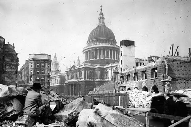 While the Germans were raining bombs on London during the second world war, the architects’ department of London County Council was busy colouring in Ordnance Survey maps of the city to record which buildings had been destroyed and which had not. These maps have now been published as a book by Thames and Hudson, The London County Council Bomb Damage Maps, 1939-45. Those buildings that had been totally destroyed were coloured black on the maps; those that had been damaged beyond repair, purple. And a review of this book in last Saturday’s edition of the Times was accompanied by a reproduction of one map covering the area around St Paul’s Cathedral, which is exactly where I was residing as a baby during the autumn of 1940 when the Blitz of the City began.