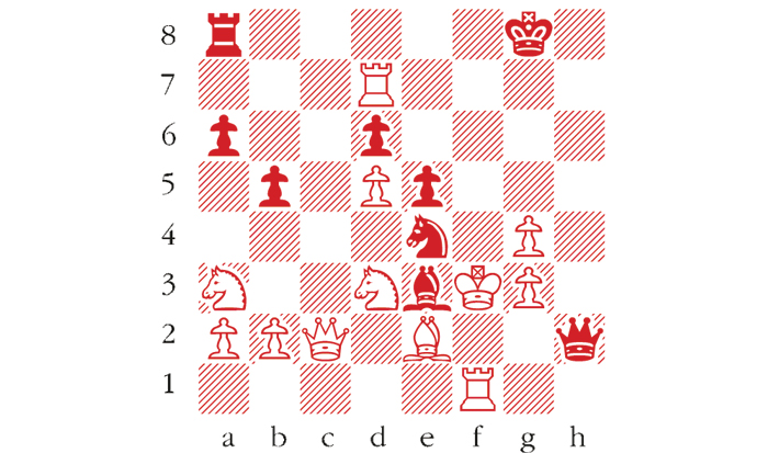 Black to play. This position is a variation from So-Nakamura, St Louis 2015. How can Black conclude the attack with a brilliant coup? Answers to me at The Spectator by Tuesday 22 September or via email to victoria@spectator.co.uk or by fax on 020 7681 3773. The winner will be the first correct answer out of a hat, and each week there is a prize of £20. Please include a postal address and allow six weeks for prize delivery.